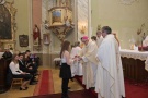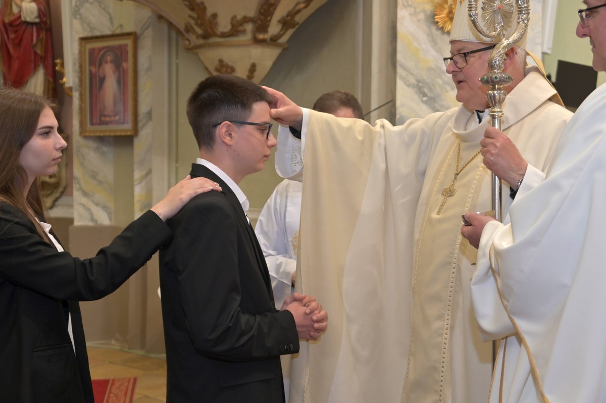 A bérmálkozókhoz szólva azokról beszélt, akik egykor találkoztak Jézussal, tömegesen kísérték testi-lelki gyógyulást remélve, és hallgatták a nagyhatású tanítót, a csodáiról elhíresült Mestert. Tanítványai büszkék voltak rá, hogy Krisztushoz tartoztak egészen addig, amíg el nem fogták és börtönbe nem zárták Jézust a tanításaiért. „Amikor meg akarjuk érteni a bérmálás lényegét, akkor a Krisztus kereszthalála és feltámadása utáni időket kell szemlélnünk” – hangsúlyozta a püspök, és arról beszélt, amikor Jézus megjelent a zárt ajtók mögött apostolainak. Imádságra szólította fel őket, amíg el nem jön a Szentlélek, az Igazság Lelke. A feltámadást követő 50. napon aztán megtapasztalták a Szentlélek eljövetelét, és minden megváltozott az életükben. Életüket adták Krisztusért, és bátran hirdették Jézus feltámadásának örömhírét. … Nyomukban mindenütt keresztény közösségek születtek, és minden üldöztetés ellenére az egyház élő valósággá vált. „Magunkban gyengék vagyunk, de a Szentlélek erejével képesek leszünk Krisztus tanítását megvalósítani életünkben. Tanúságtevő, hitvalló és hűséges gyermekei leszünk az egyháznak. Napi imádságunkban mondjuk: Szólj, Uram, mert hallja a Te szolgád! Így erősödjünk meg Isten szavában és a vasárnapi szentmise által pedig Isten népének közösségében! A szentgyónásban és a szentáldozásban találkozzunk Krisztussal, aki követésére hív bennünket. Legyünk Isten számára alkalmas eszközök, hogy életünkkel a béke és a szeretet országát építsük az emberek között” – buzdította a főpásztor a fiatalokat. Majd Spányi Antal püspök 26 jelöltnek szolgáltatta ki a bérmálkozás szentségét. Kézfeltétellel imádkozott értük, és megkente krizmával a bérmálandók homlokát.
