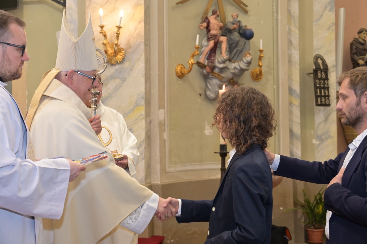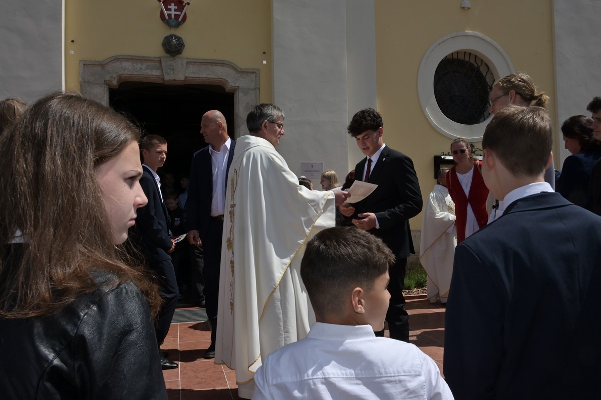 A szentmise végén a plébános is köszöntötte az újonnan bérmáltakat, és köszönetet mondott mindazoknak, akik bármilyen módon részt vállaltak a 300 éves templom felújításában. Burbela Gergely atya örömteli megnyugvással jelentette be, hogy ezentúl egy statikailag biztonságos templomban mutathatja be Krisztus örök áldozatát.