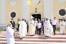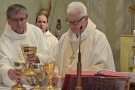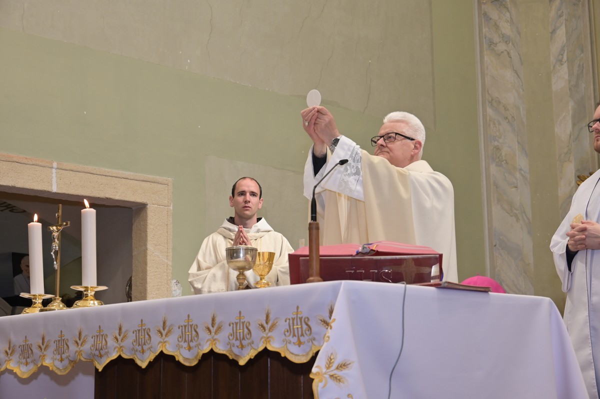 A főpásztor a Magung Fransis SVD tartományfőnökkel, Burbela Gergely SVD plébánossal, Szakács Péter püspöki titkárral és a vendég verbita atyákkal bemutatott szentmisén a segítő szeretet mesterének, Páli Szent Vince áldozópapnak az ereklyéjét helyezte el a templom új oltárában.