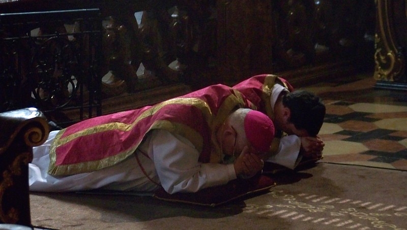 Az egyház ezen a napon, és a rákövetkezőn sem mutat be szentmiseáldozatot. A Székesegyházban a nagypénteki szertartást Spányi Antal megyés püspök vezette. A püspök, a papok és az asszisztencia csöndben vonult a puszta oltár elé, a püspök arcra borult, mindenki más térden, csöndben imádkozott.