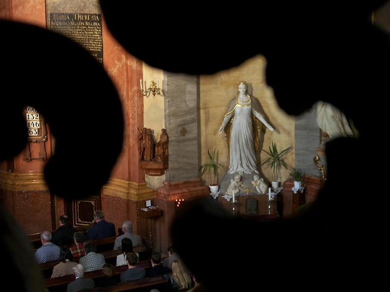 A rákövetkező napon, Nagyszombaton az Egyház Urunk sírjánál időzik.