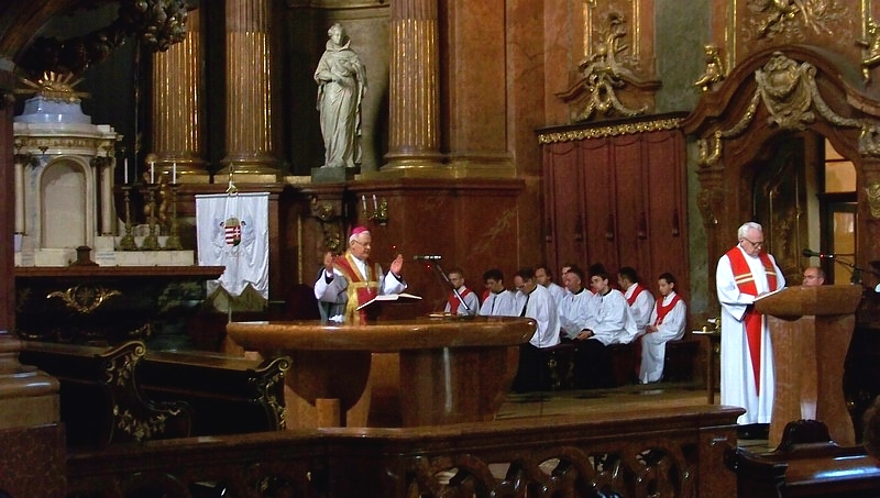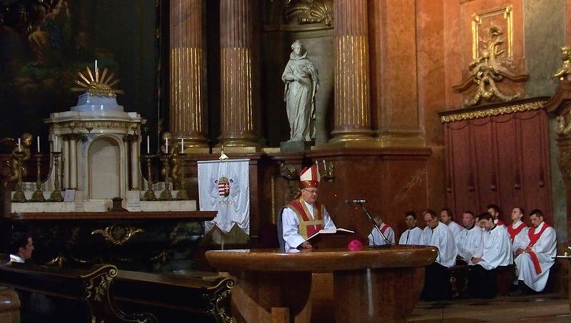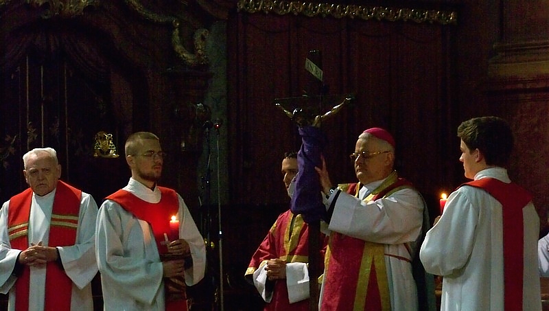 Eztán kezdődött a szertartás az igeliturgiával, melyet az olvasmányok fölolvasása, majd a passió eléneklése után Spányi Antal rövid szentbeszéde követett.